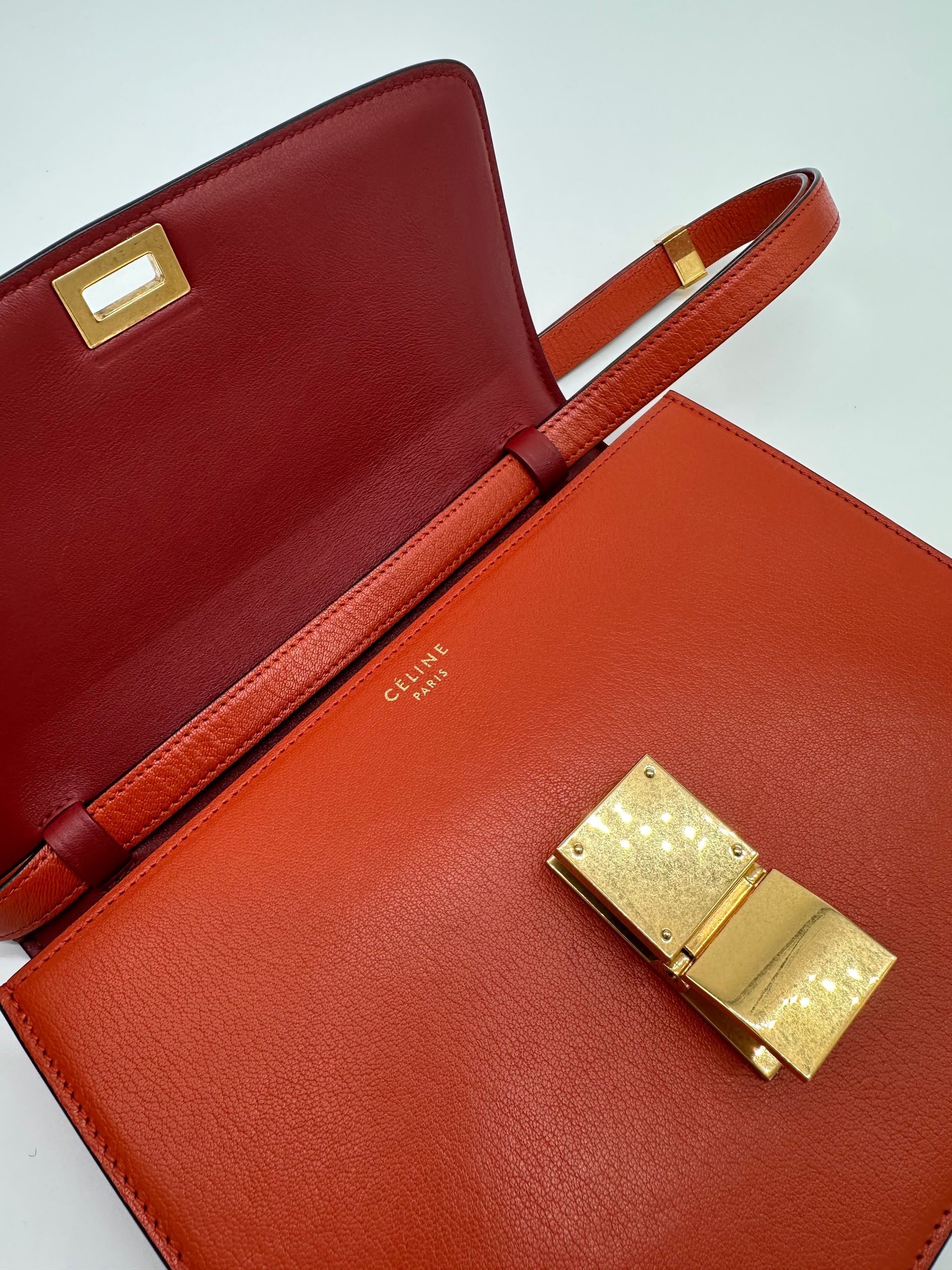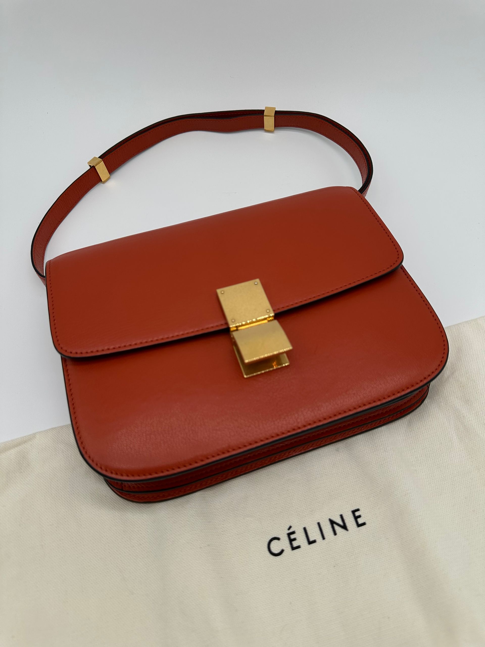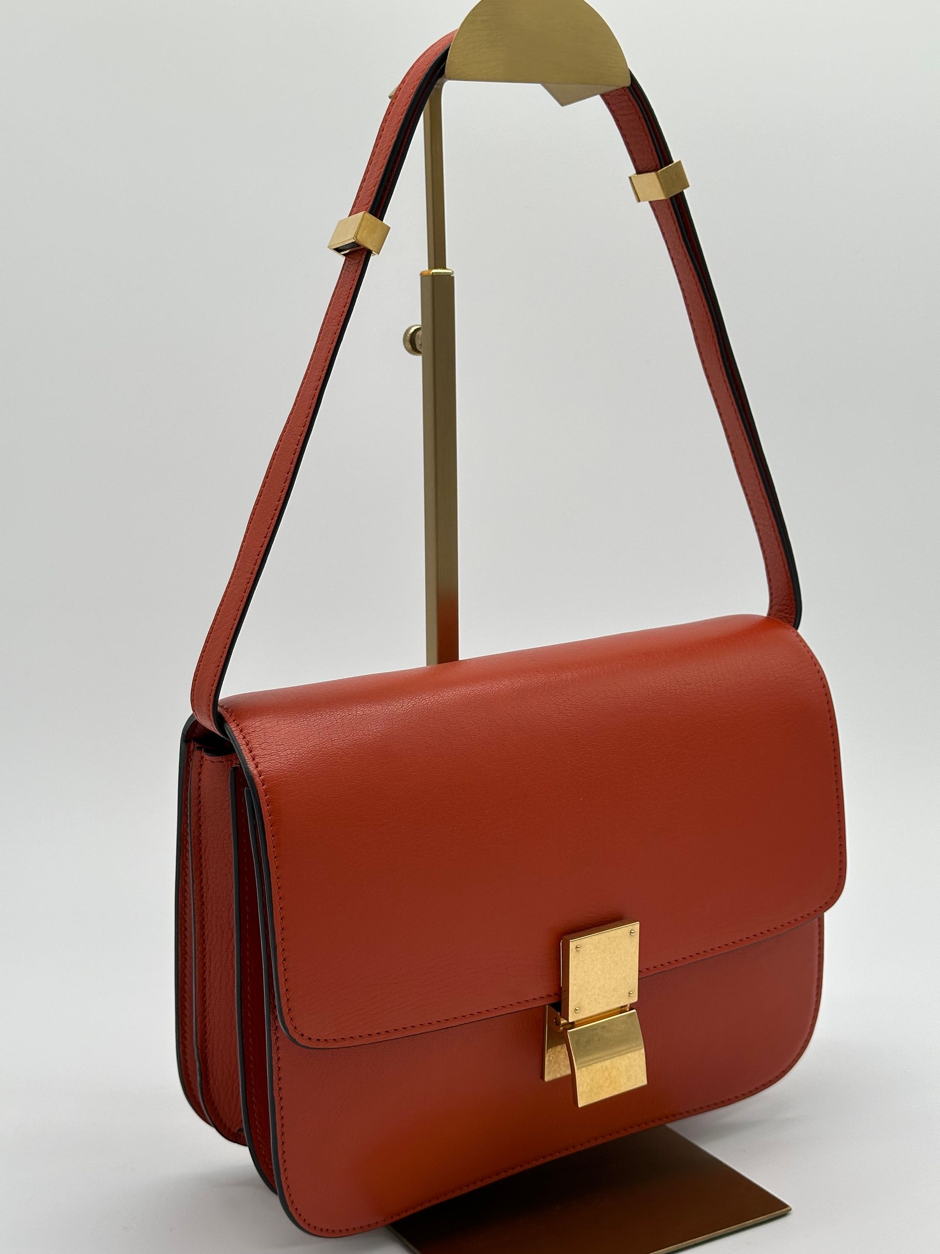 Celine Calf Skin Medium Classic Box Flap Bag (Orange)
