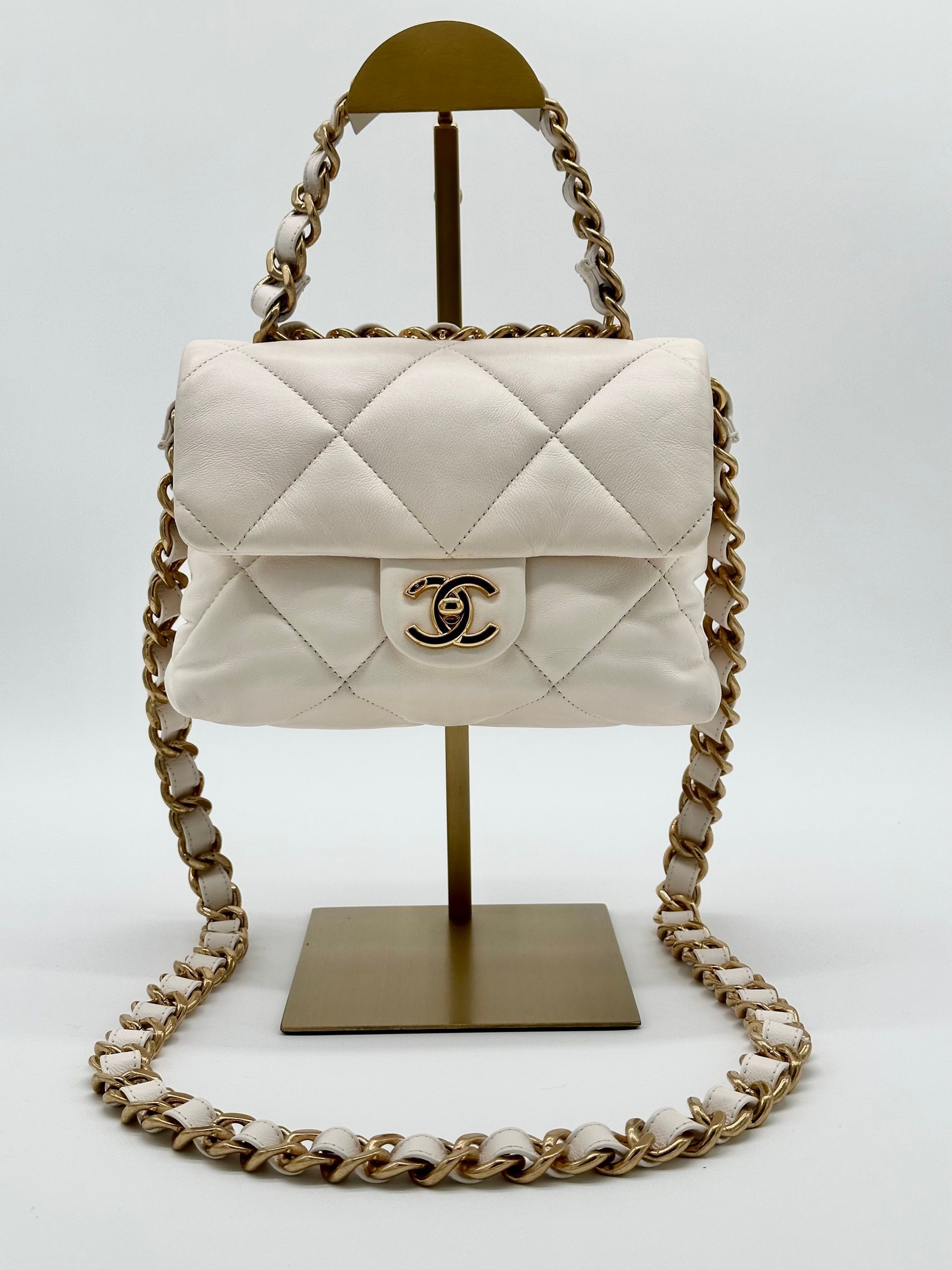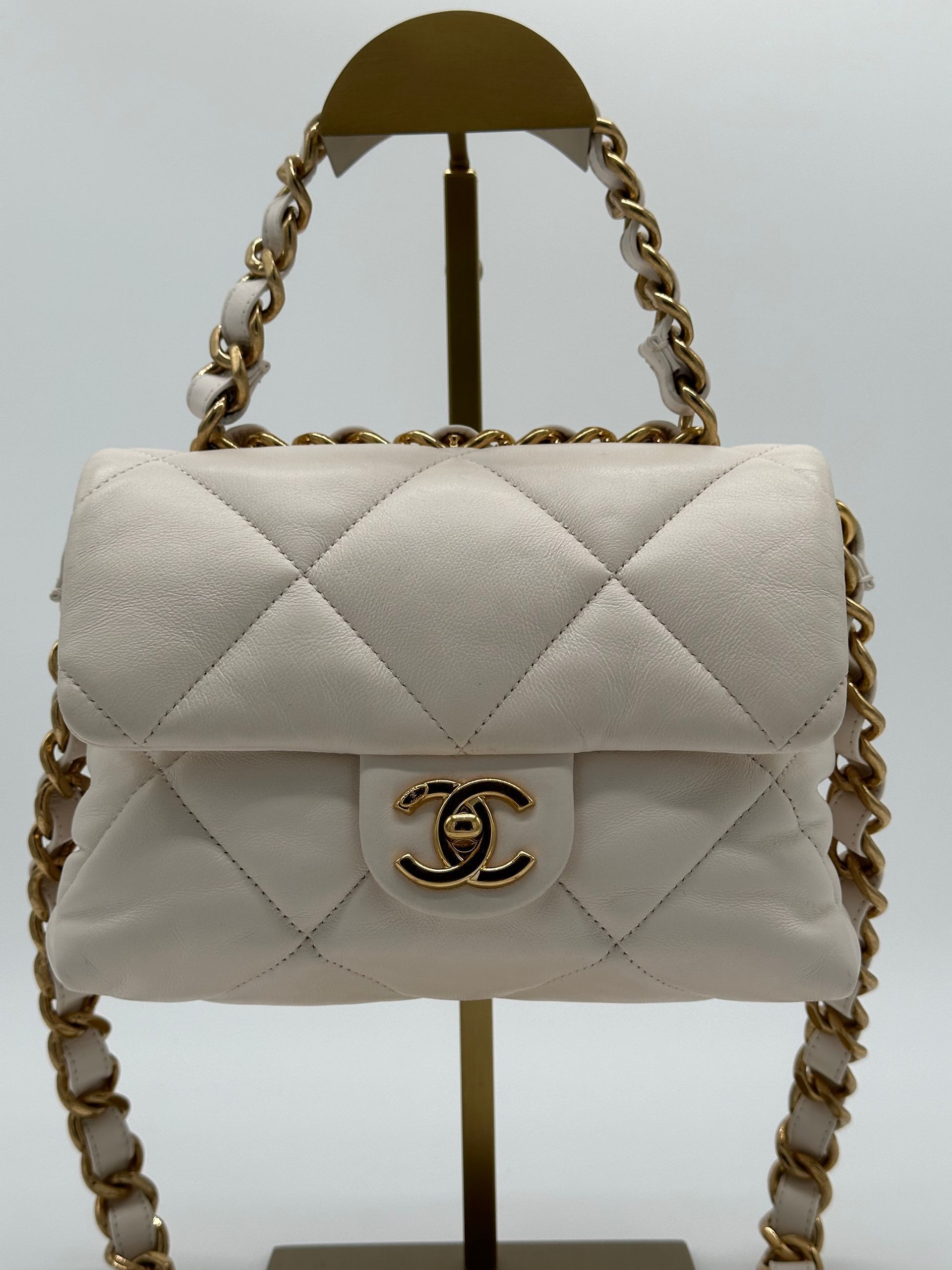 Chanel CC Bar Chain Handle Flap Bag (White)