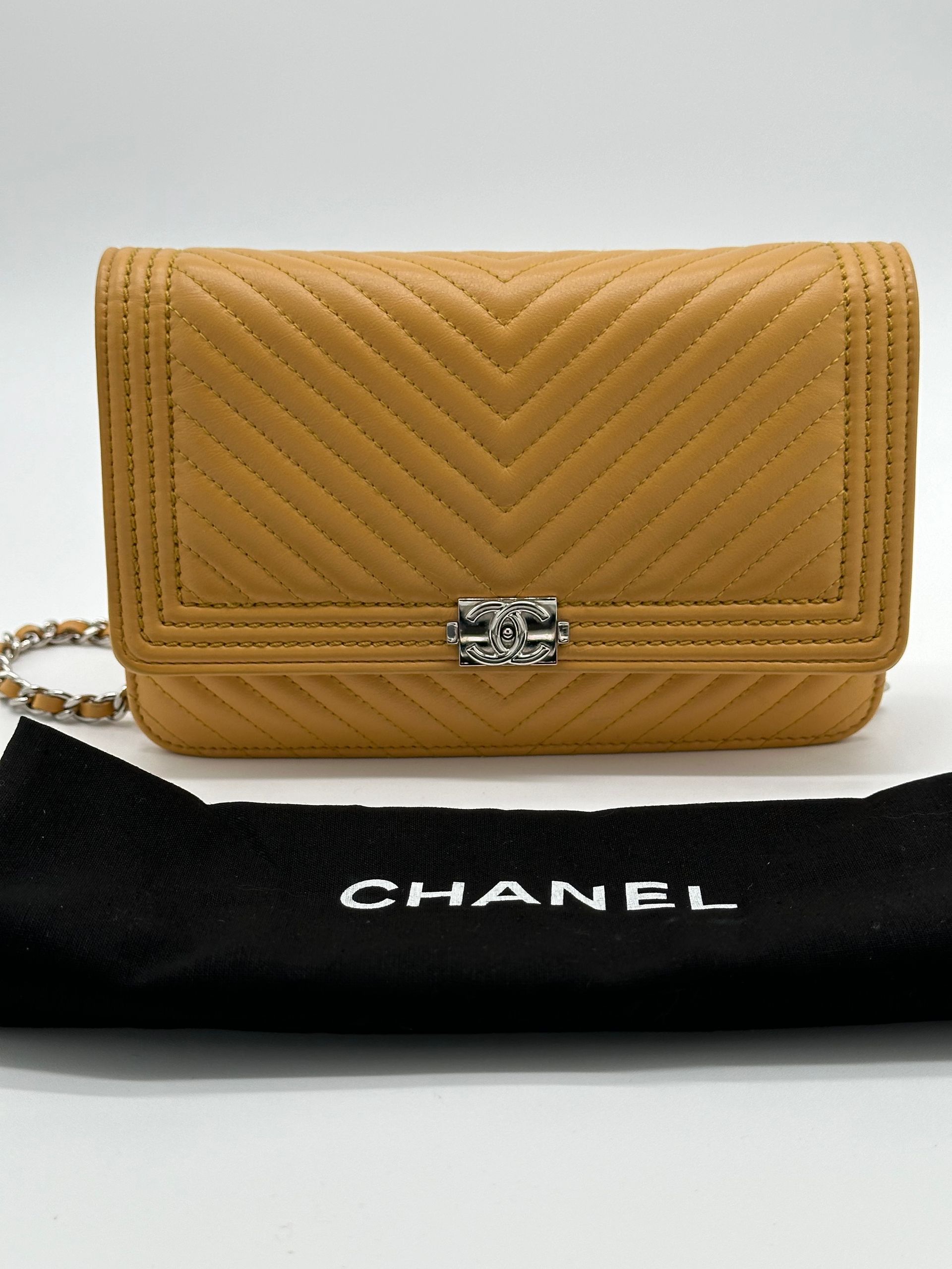 Chanel Boy Caviar Wallet on Chain (Yellow)