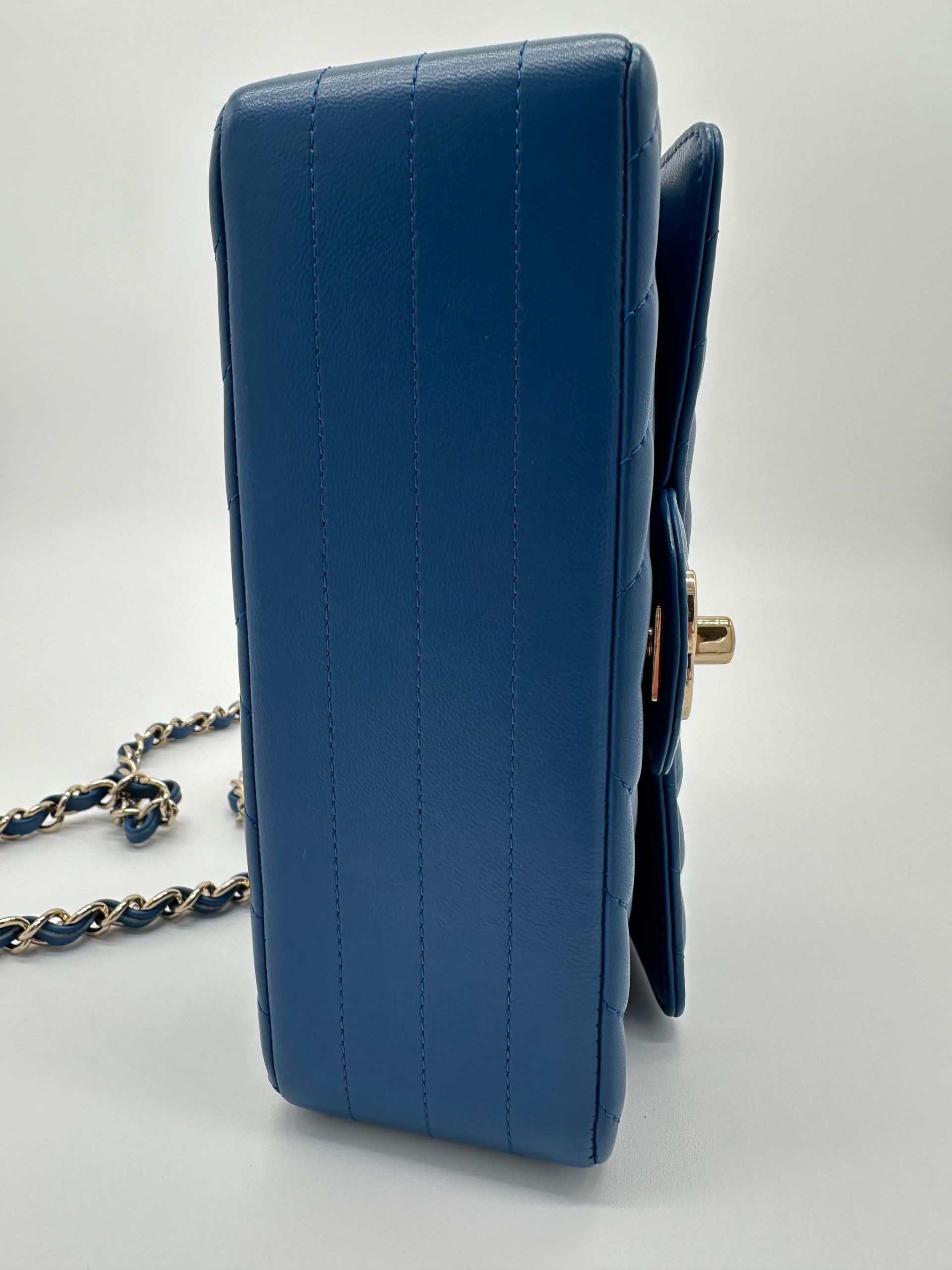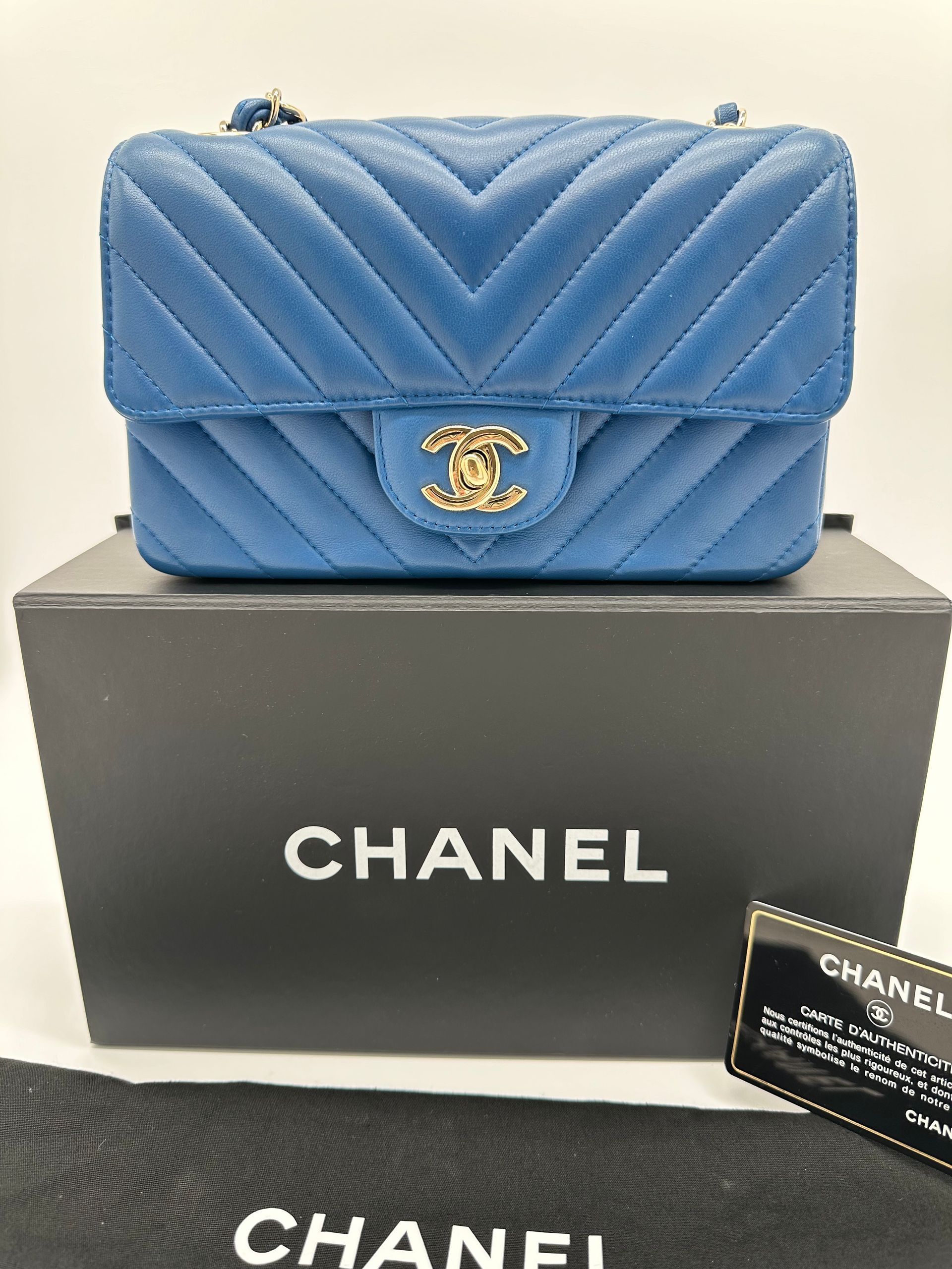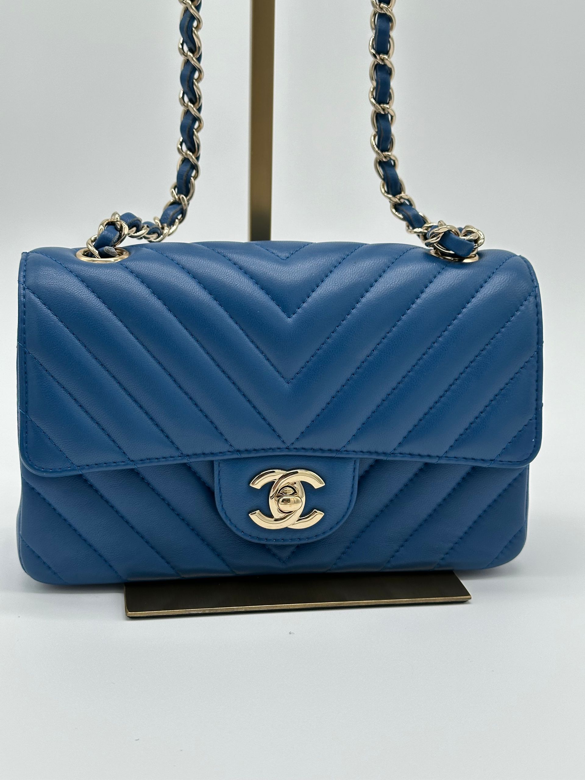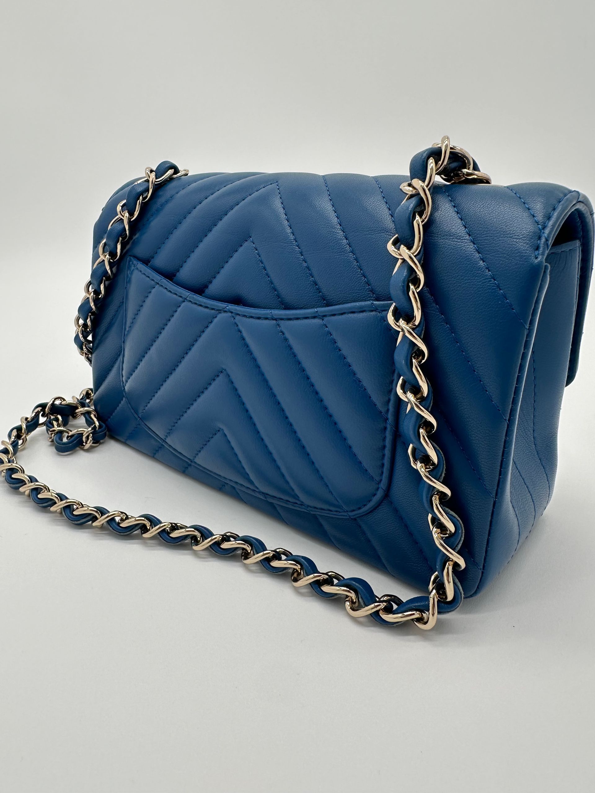 Chanel Lambskin Chevron Quilted Mini Rectangular Flap (Blue)