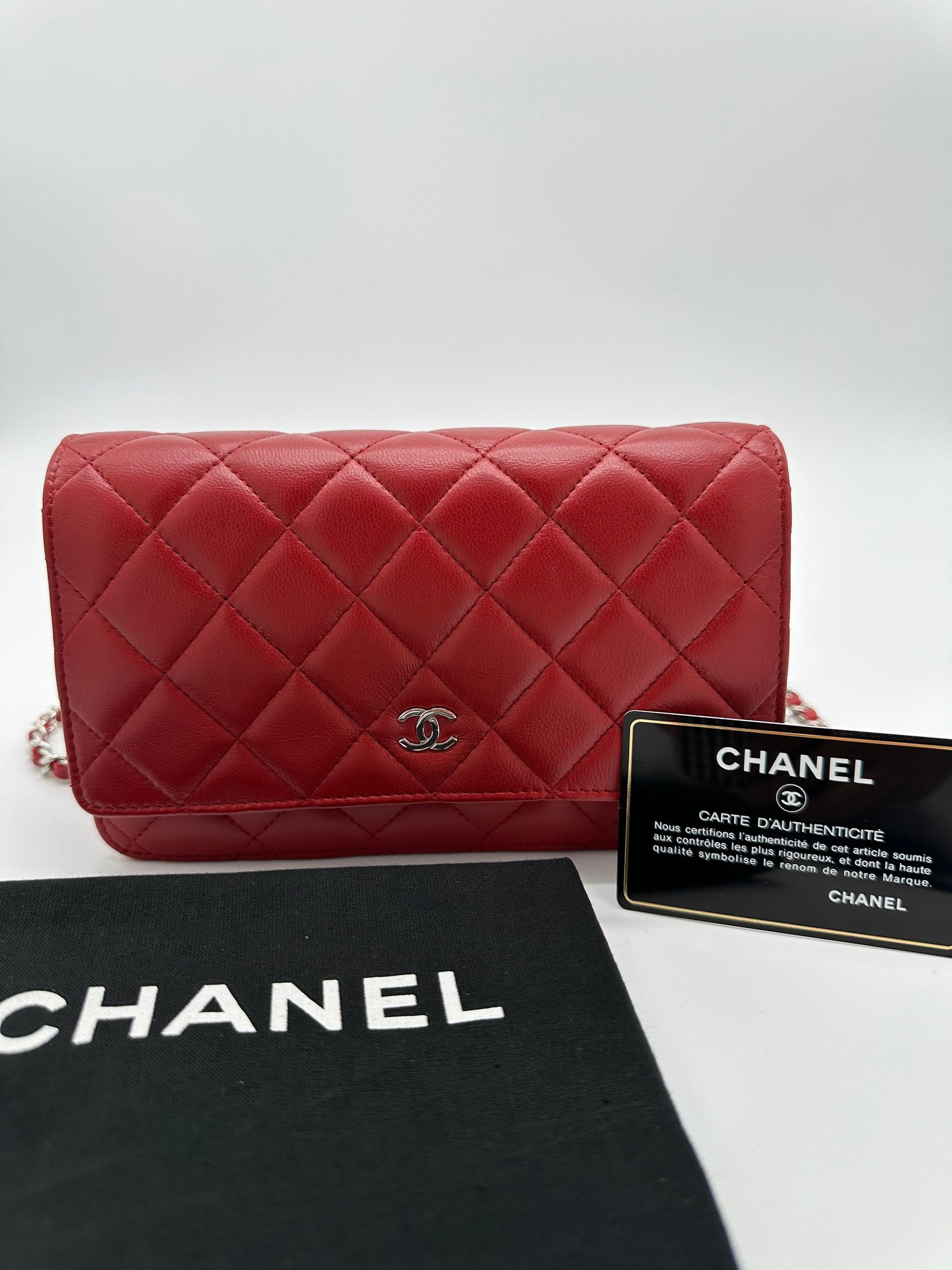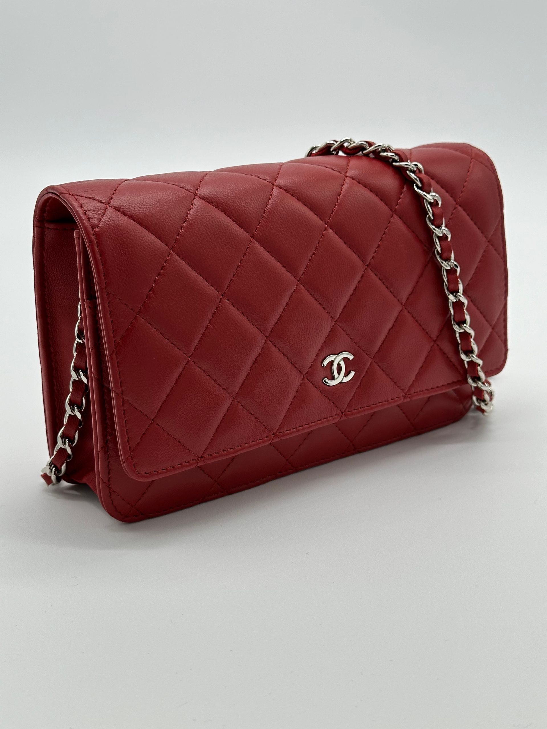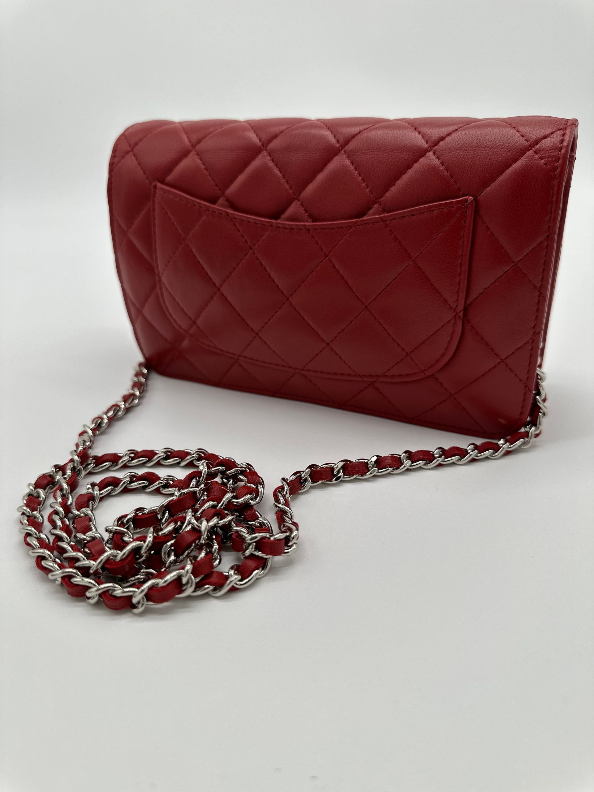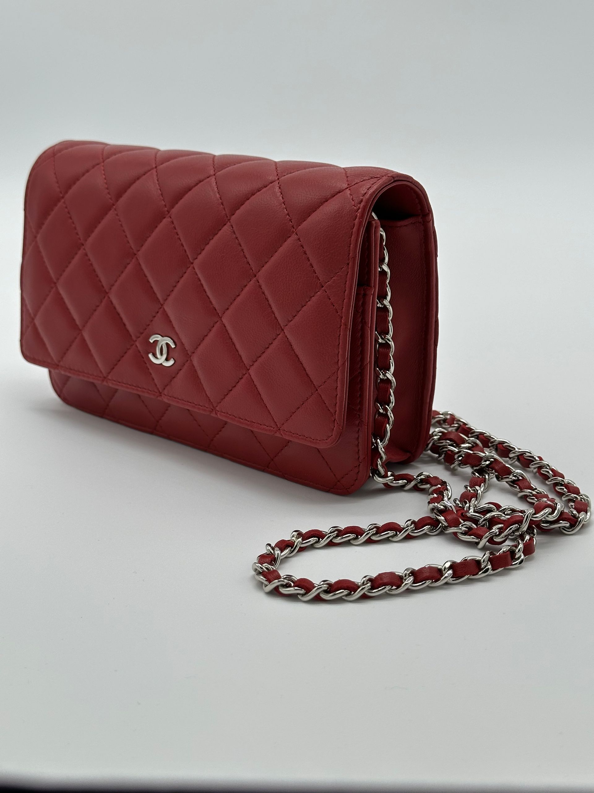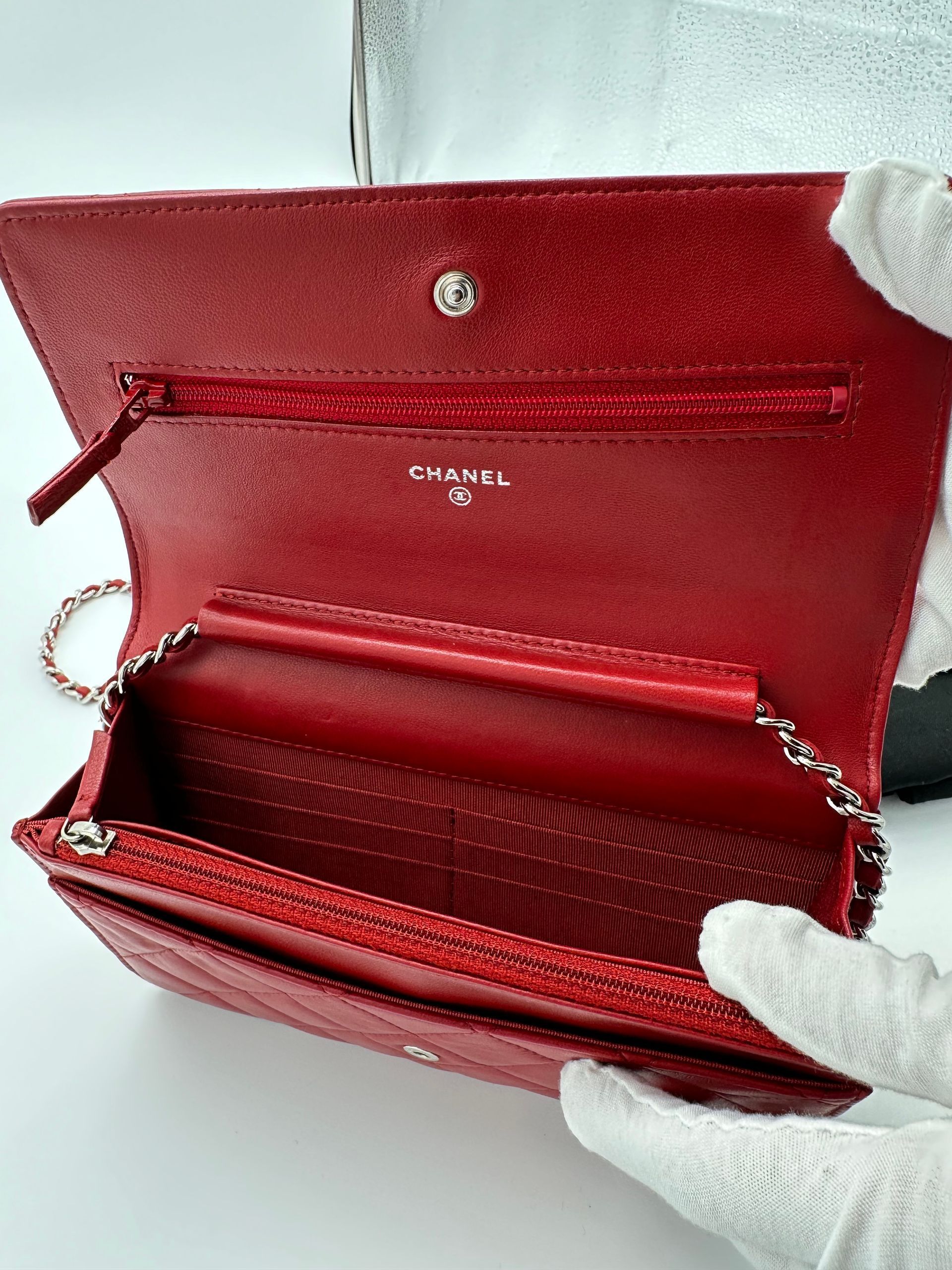 Chanel Lambskin Quilted Wallet On Chain (Red)