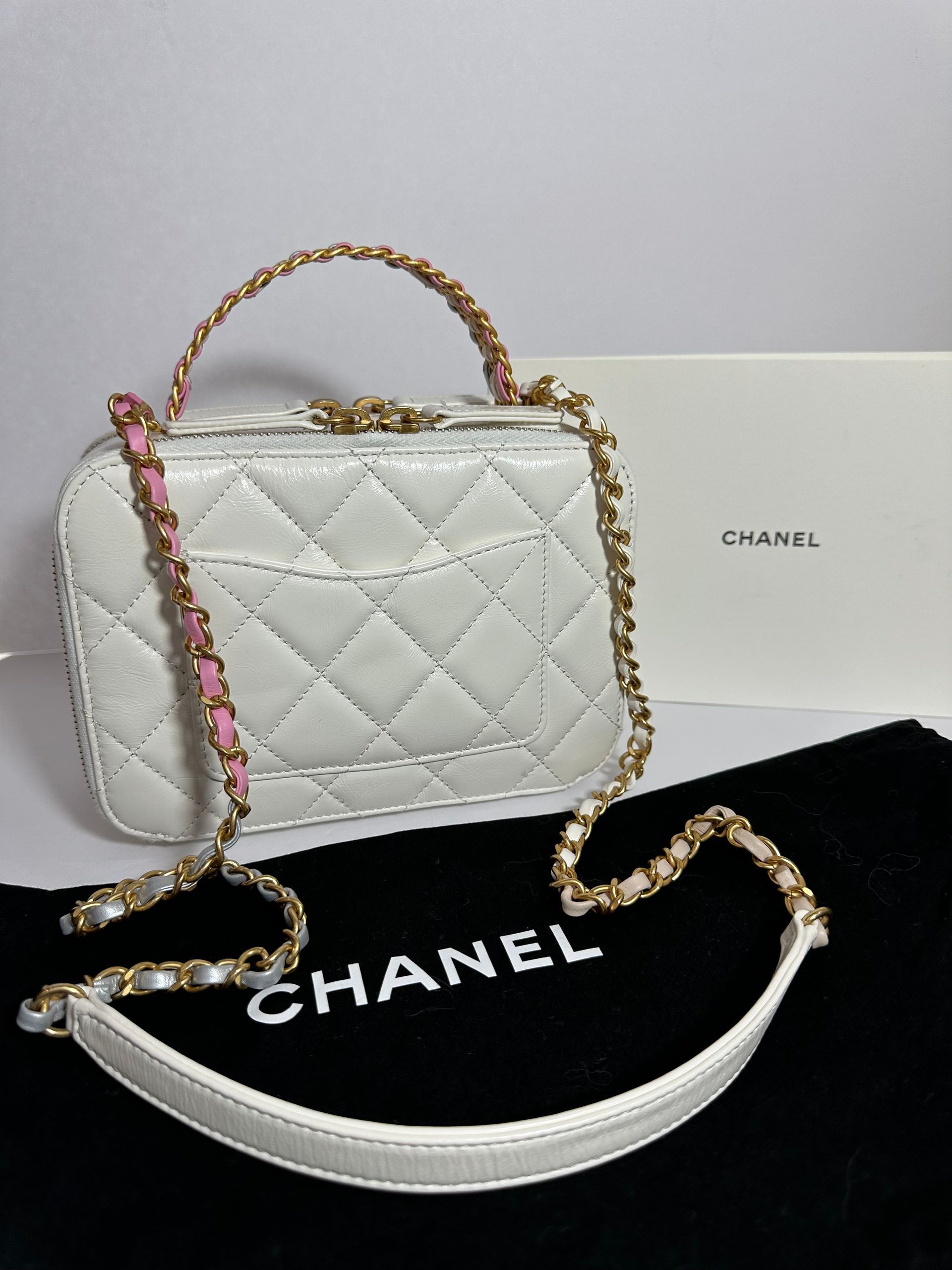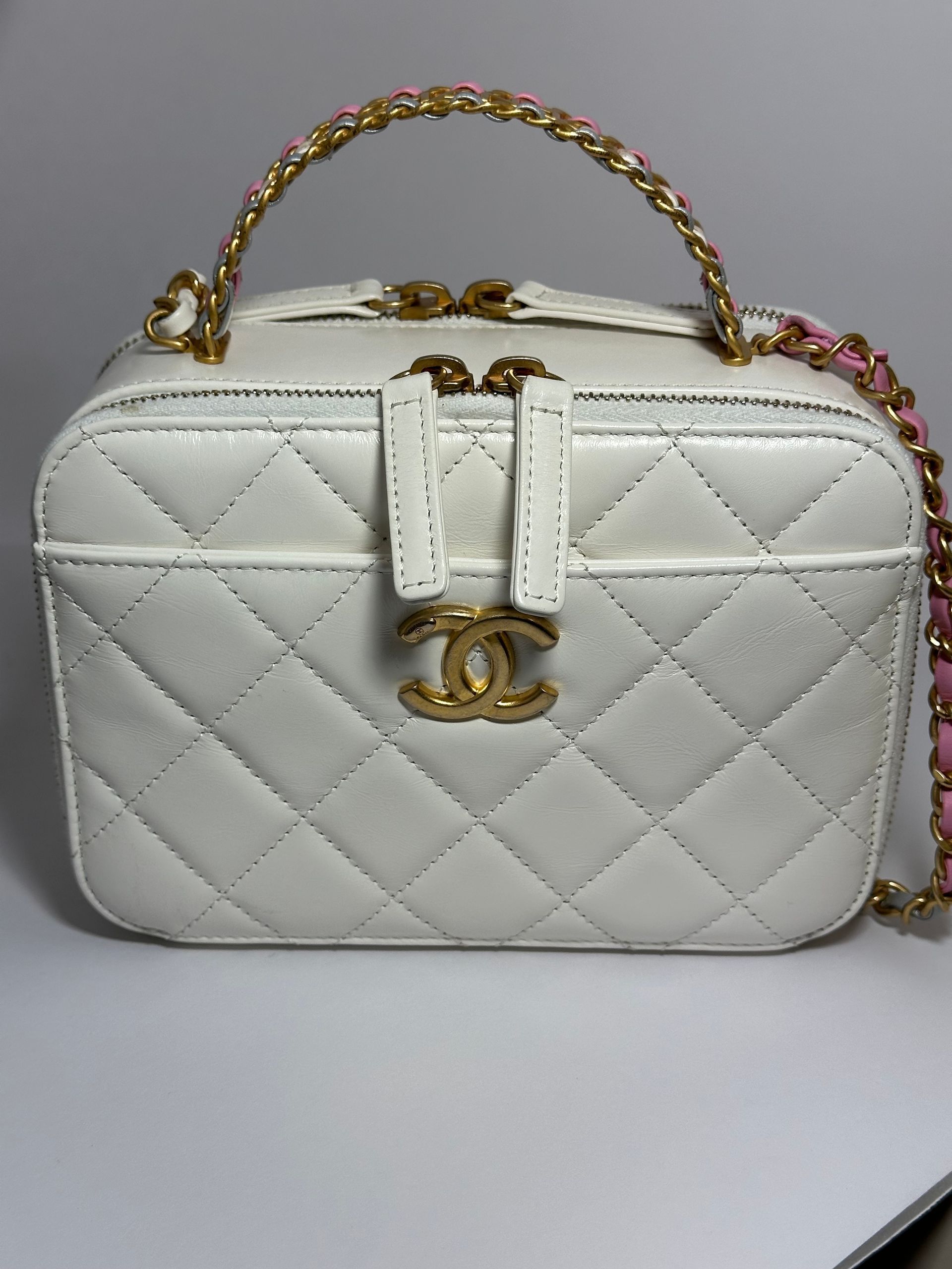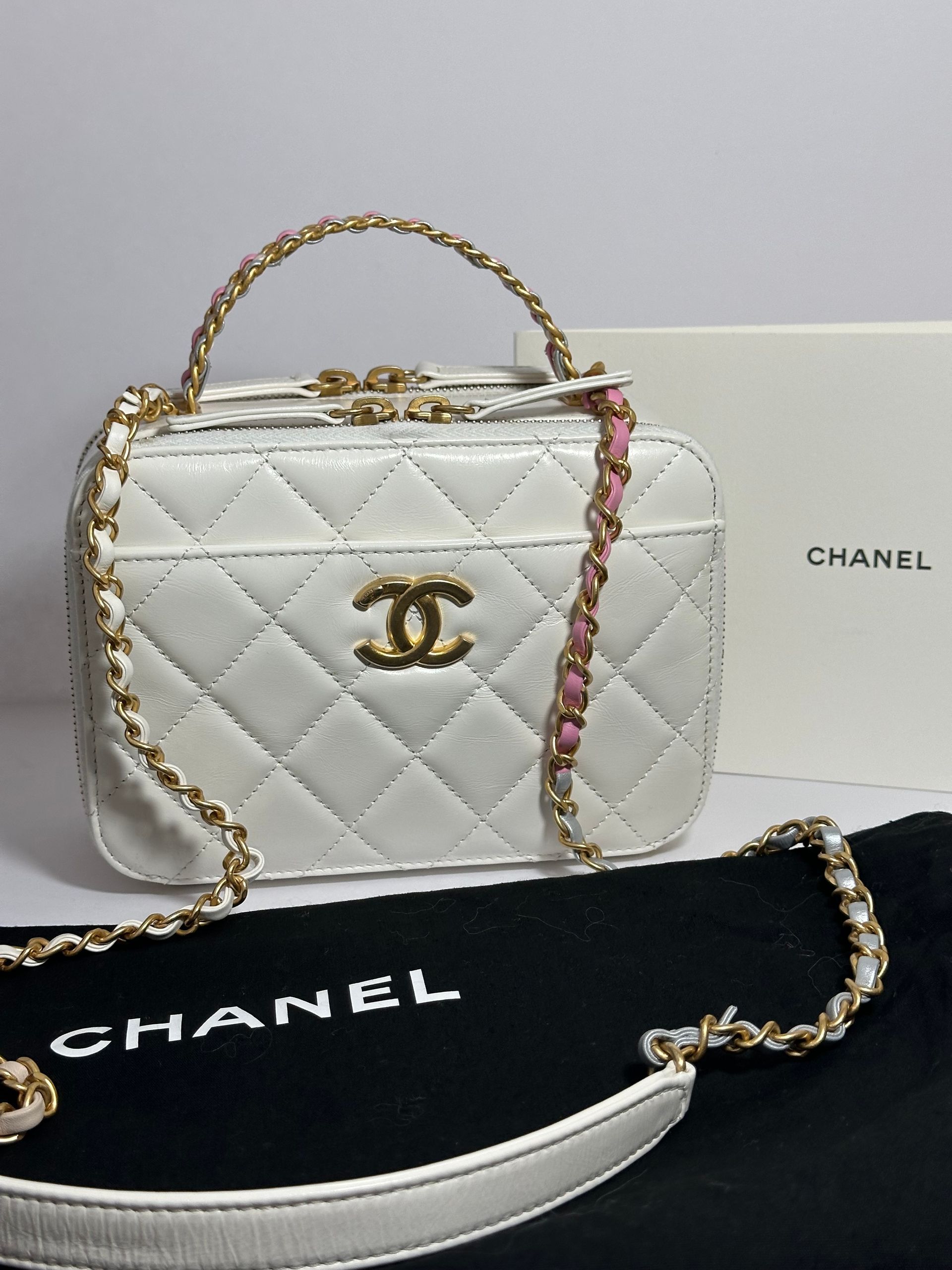 Chanel Rainbow Chain Pick Me Up Logo Handle Vanity Case (White)