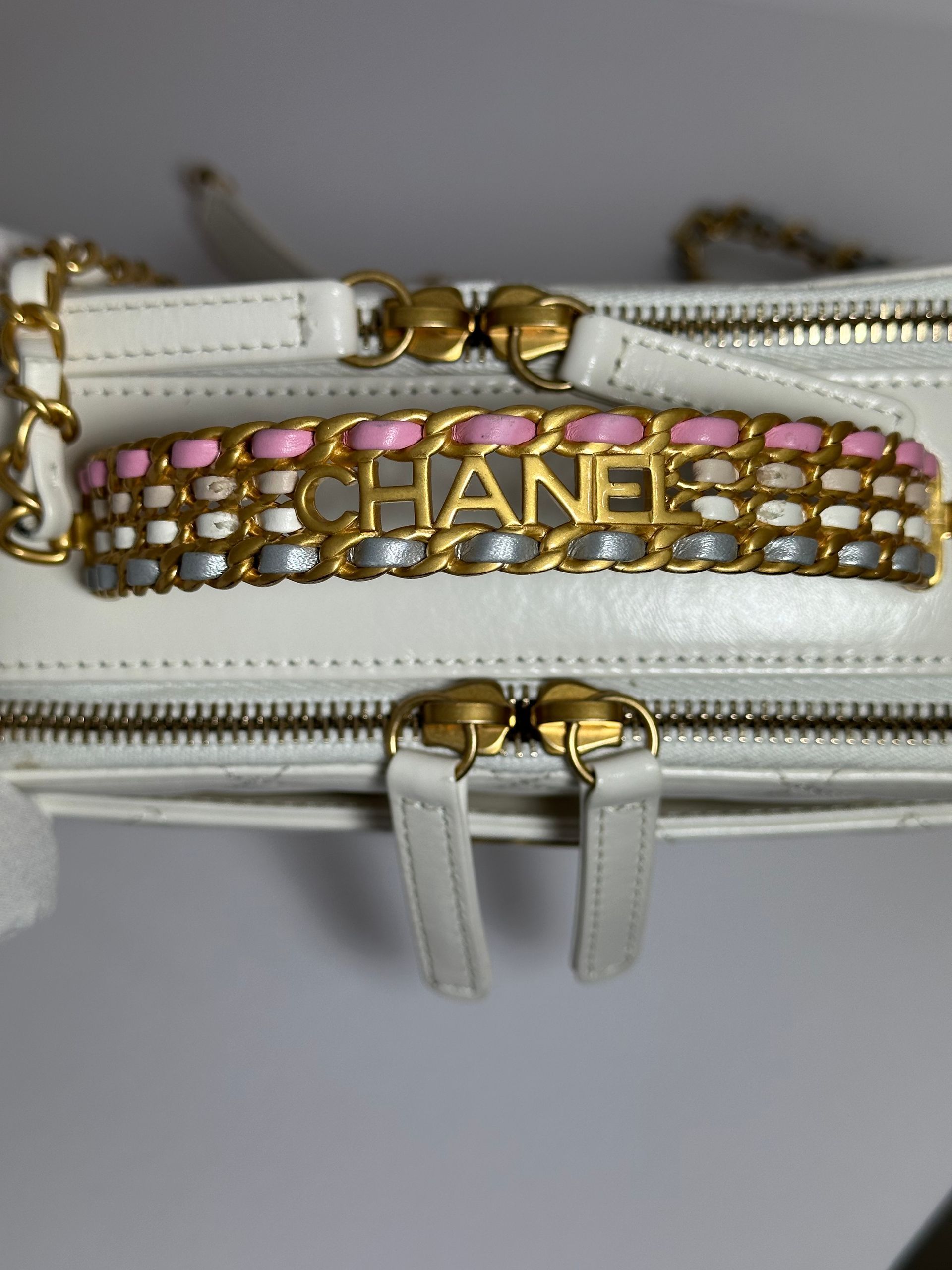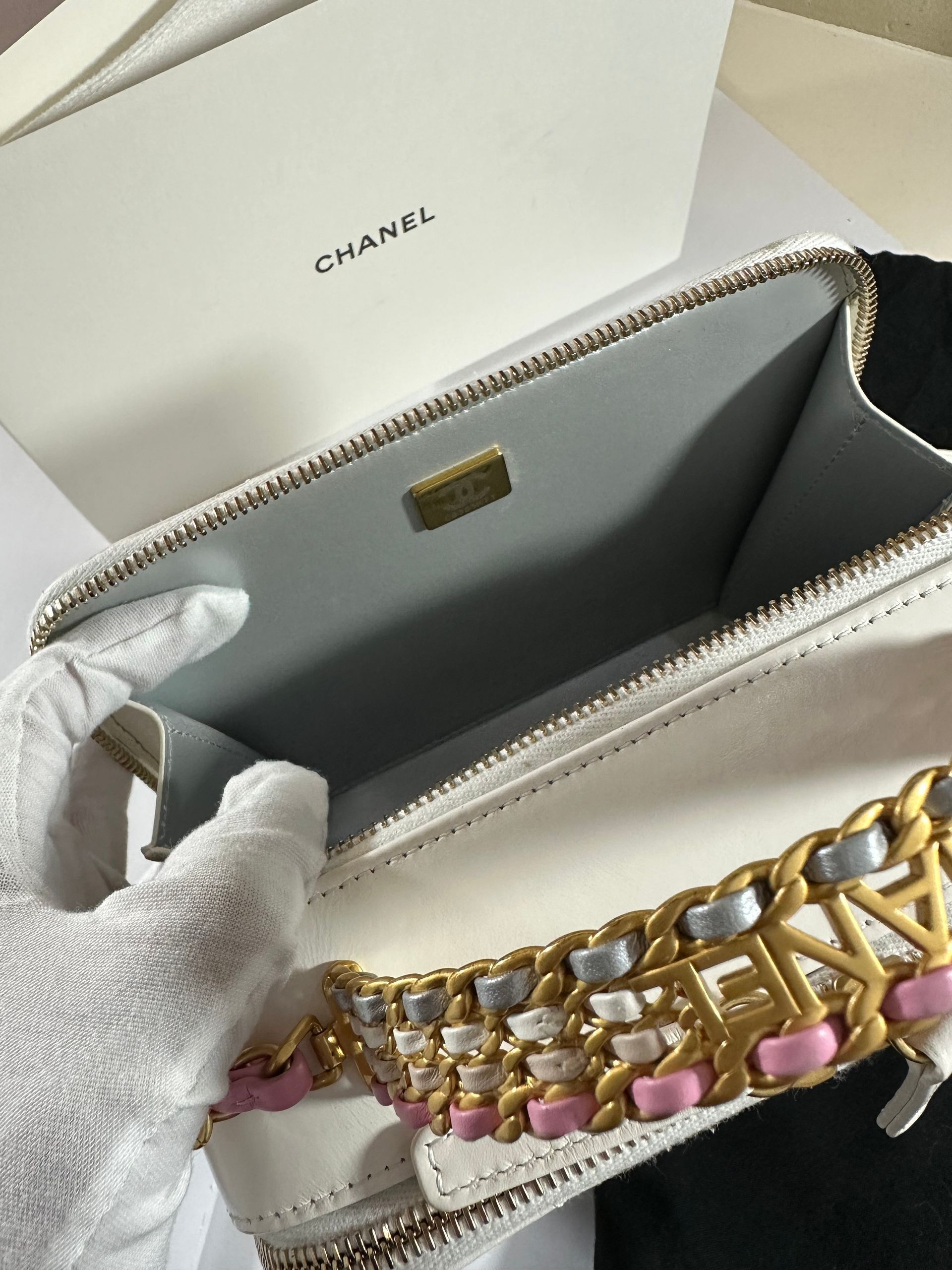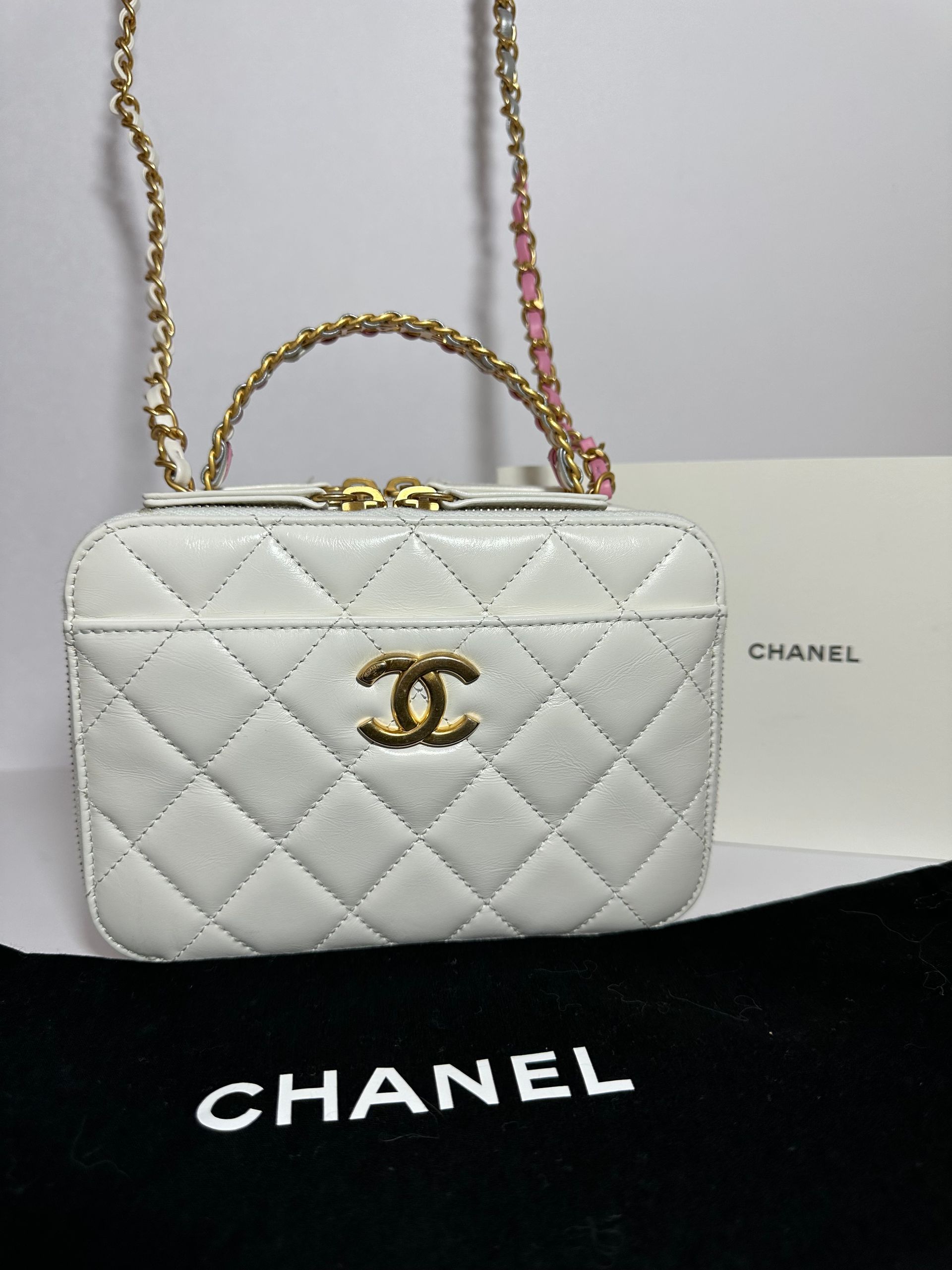 Chanel Rainbow Chain Pick Me Up Logo Handle Vanity Case (White)