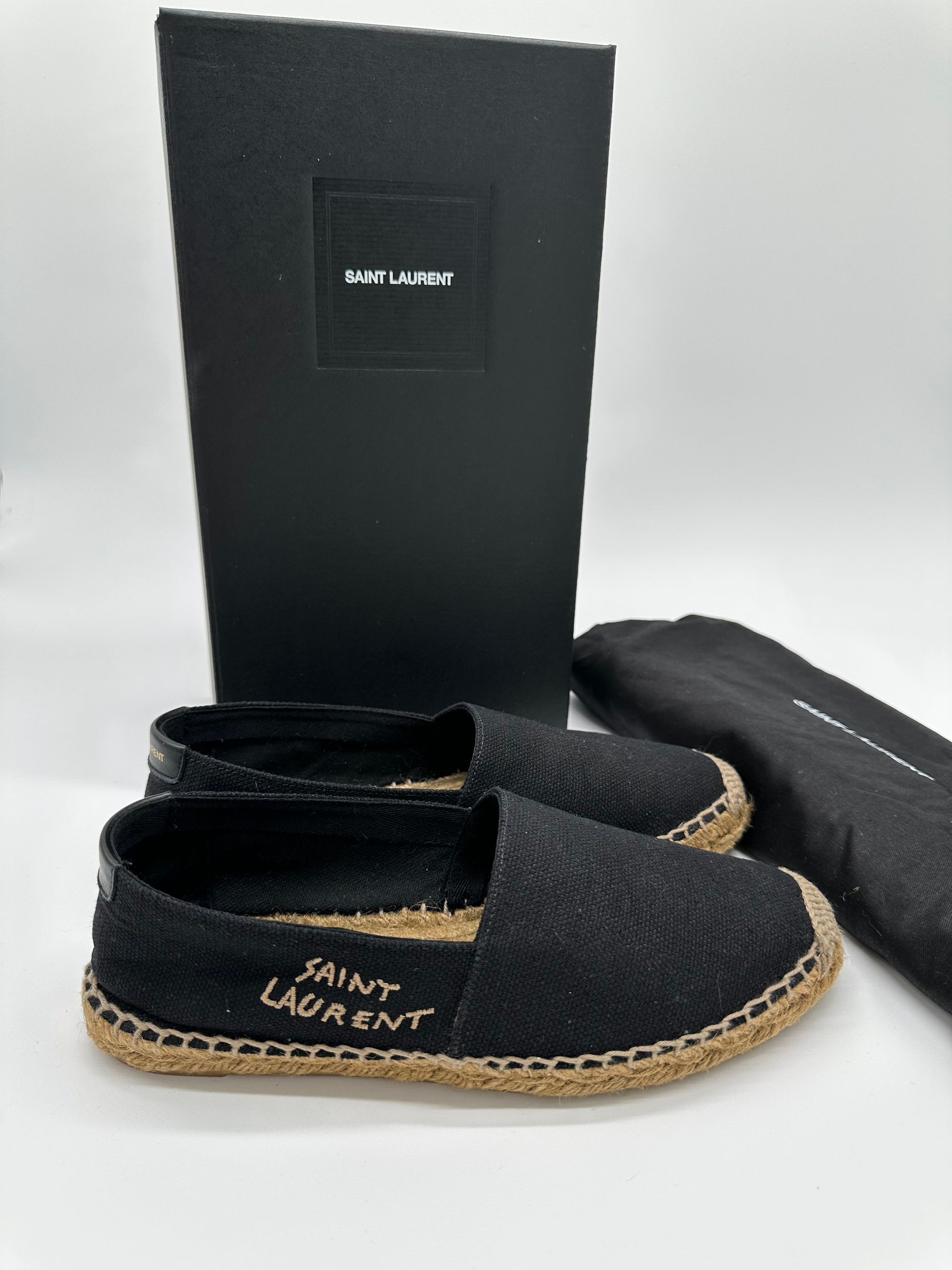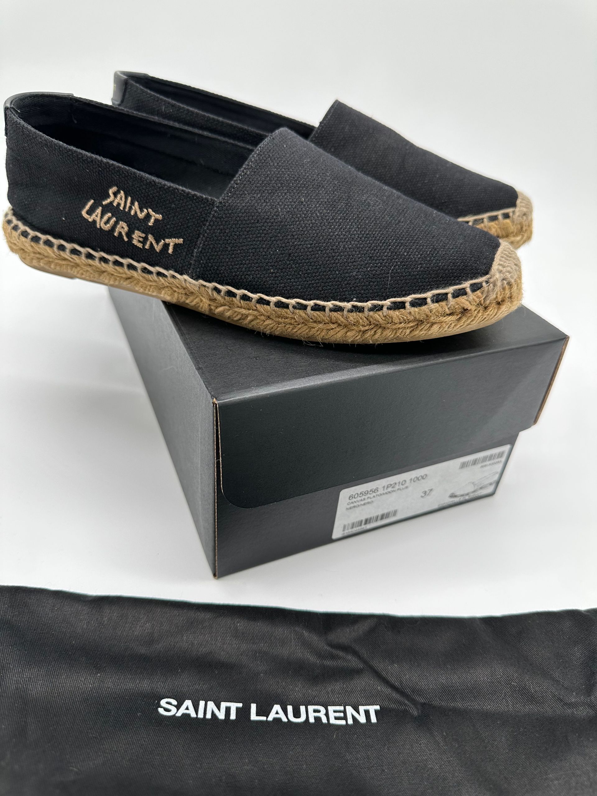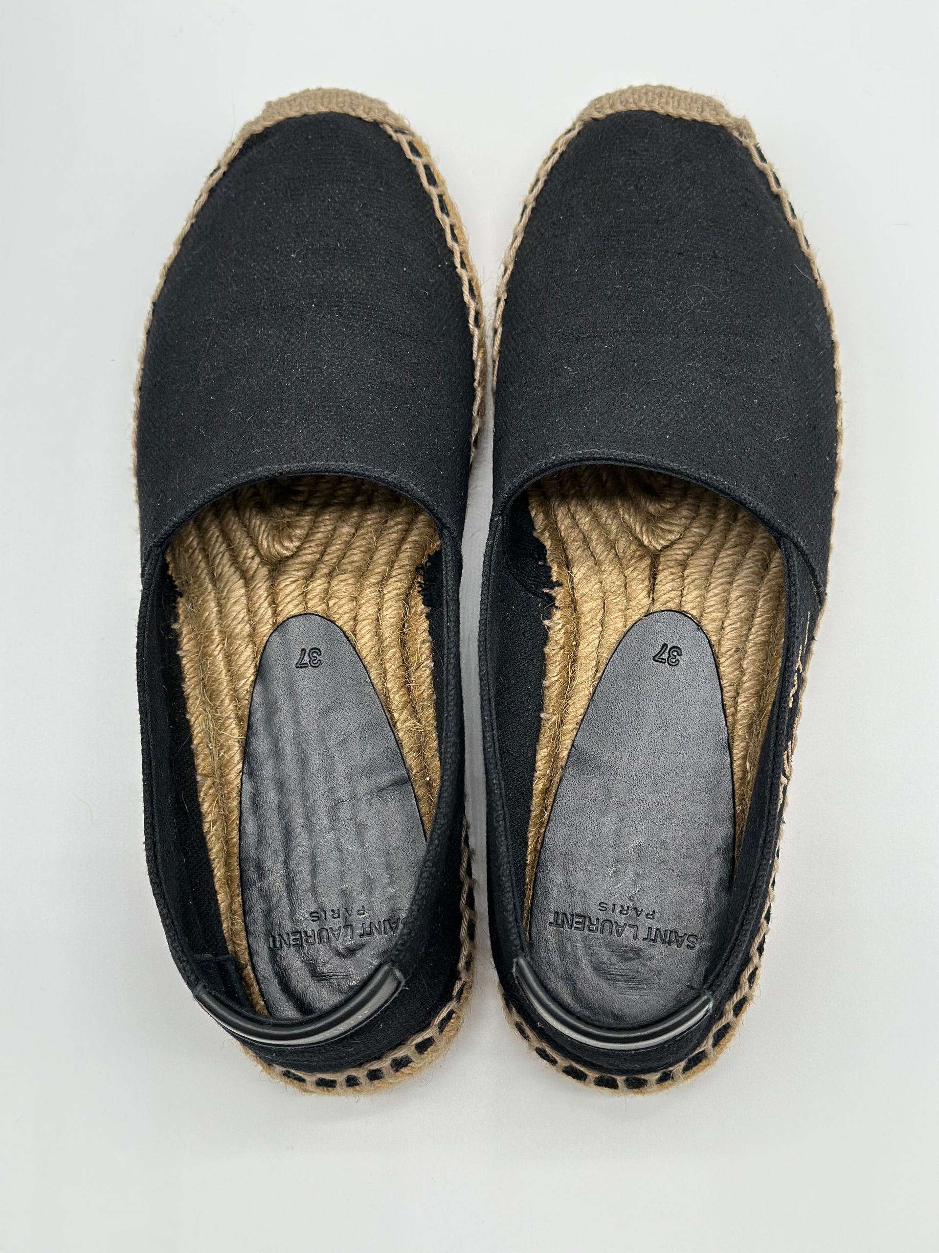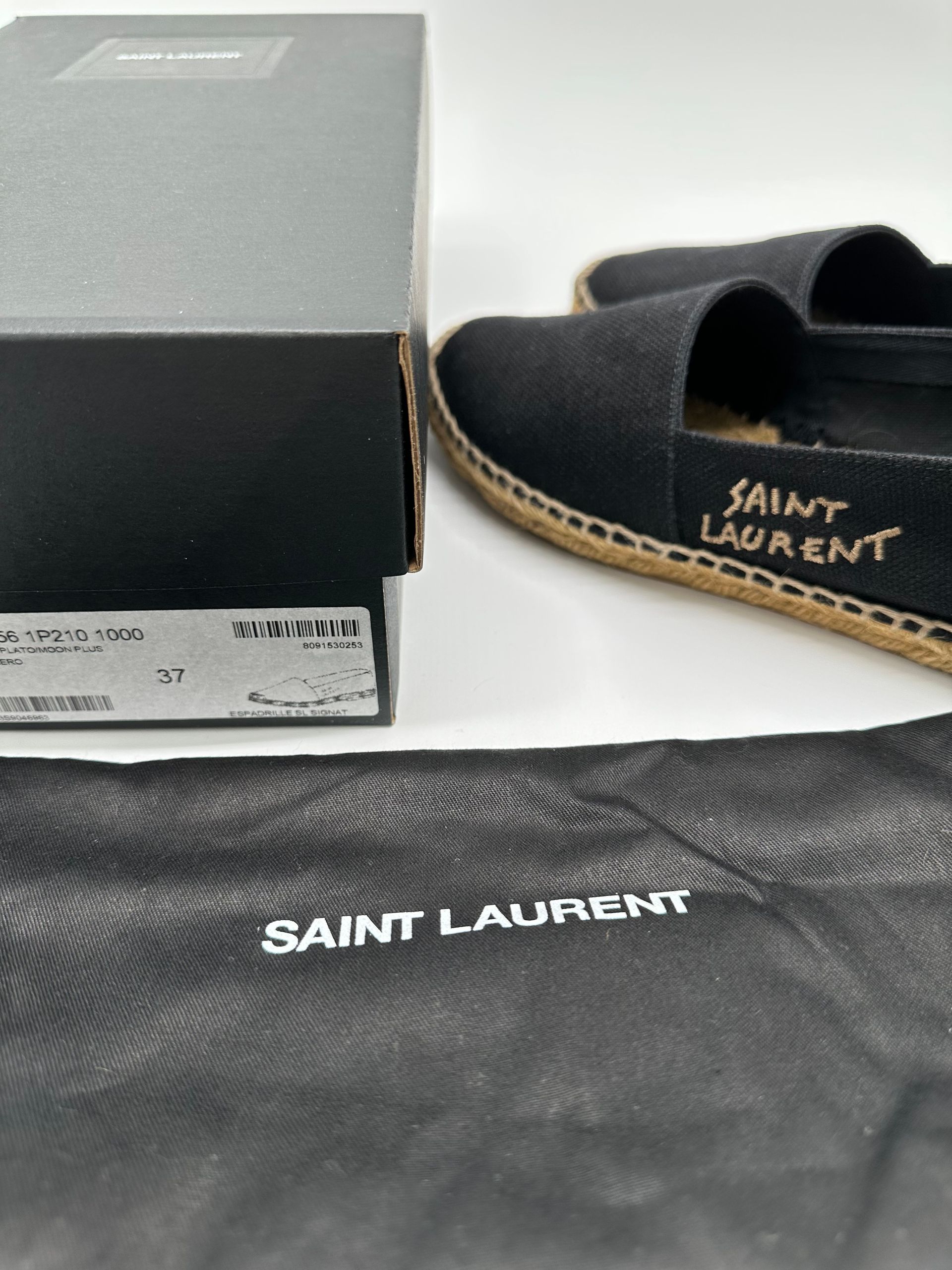 Saint Laurent Embroidered Espadrilles in Canvas (Black)